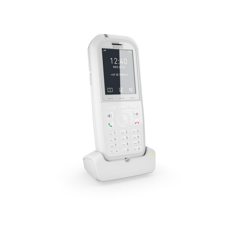 Met een gewicht van ongeveer 130 g is het apparaat niet alleen bijzonder handig, maar ook IP65-gecertificeerd en dus immuun voor spatwater en stof. Zelfs vallen van een hoogte tot 2 meter is geen probleem dankzij de versterkte behuizing. En met tot 17 uur gesprekstijd kan de Snom M90 de hele dag zonder onderbreking worden gebruikt.